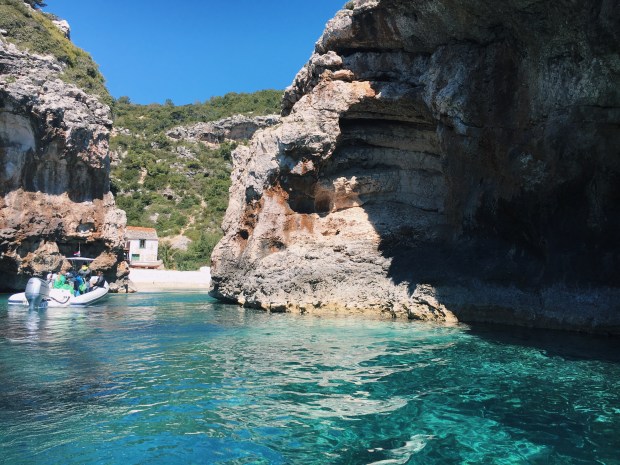 Our first full day began with breakfast pastries that literally cost a dollar (this is our version of heaven tbh). We then ventured to Toto Travel for our Blue Cave – 5 Islands tour. Our guide for the day, Peter, was a fun-loving Croatian and we had no doubt that it’d be a great and interesting day. We also had a fine-ass co-captain whose name is unknown but he deserves to be a model for Ray Bans.