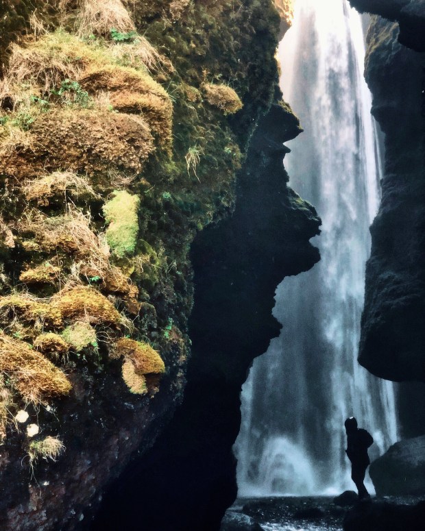On our fourth day, we left Reykjavik behind and drove along the south coast of Iceland (map of the day’s itinerary). Total driving for the day was just under three hours and all the main attractions are right off the highway (Route 1). Our first stop of the day was Seljalandsfoss, a 60-meter waterfall that we were able to walk behind (another important day for waterproof clothing!). Note, parking near the falls is 700 krona (around $6).